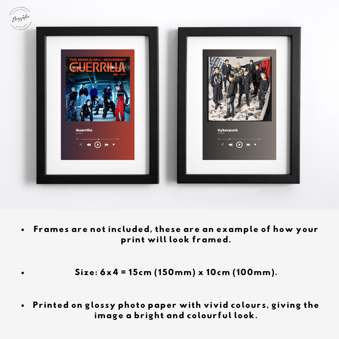 Capture your favourite ATEEZ song or album in a 6x4 photo print (mini poster) – perfect for showcasing on its own or as part of a wall collage.