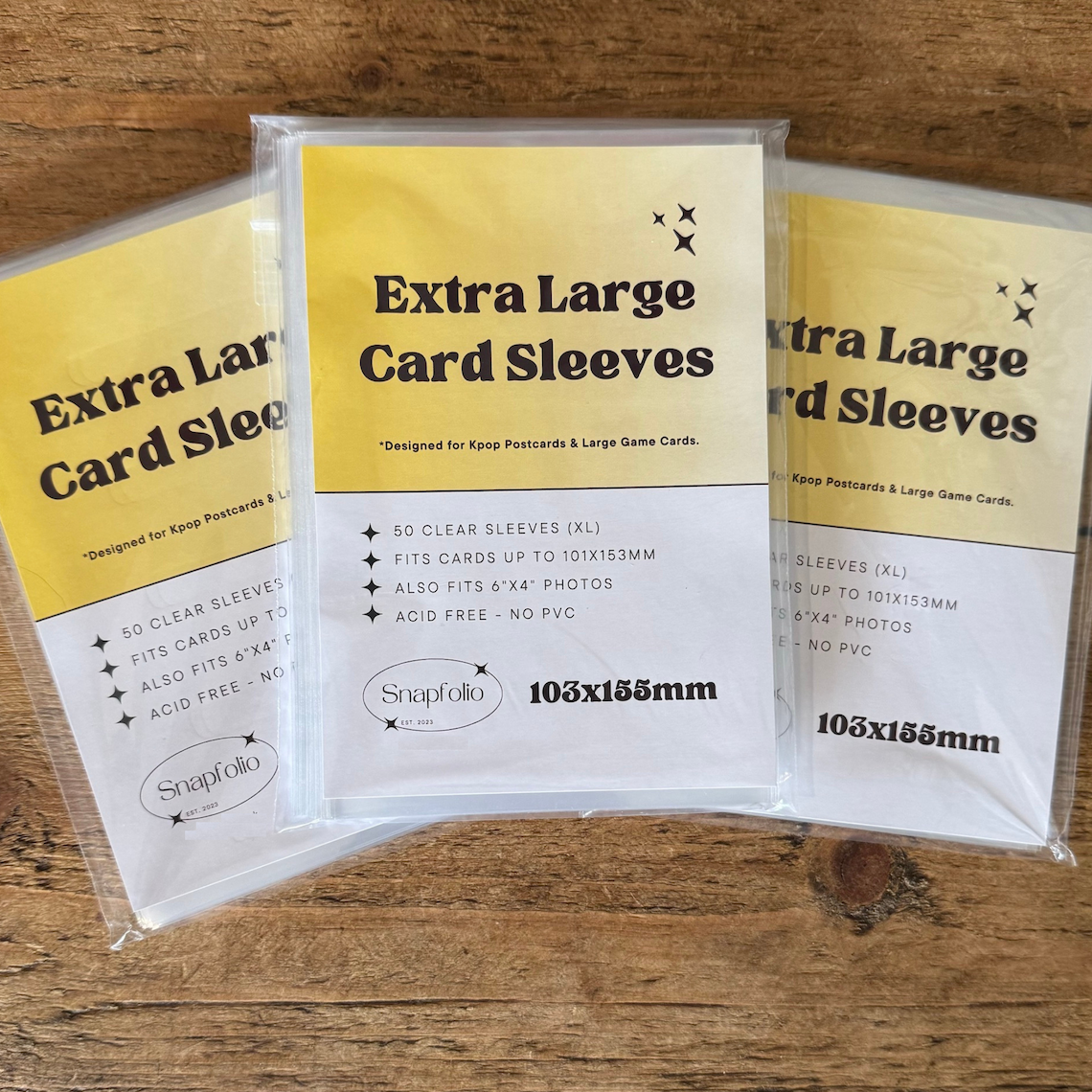Kindly note that these sleeves are not suitable for standard Photocards, as they are extra-large. Furthermore, they do not fit A6 postcards or anything larger than 103x155mm.
